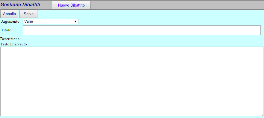 Al completamento dell'operazione di inserimento con Annulla si ritorna alla lista dei dibattiti per la categoria precedentemente selezionata.