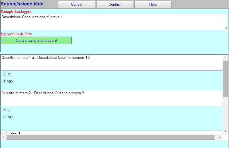 Ogni sezione di Voto può essere composta da uno o più quesiti